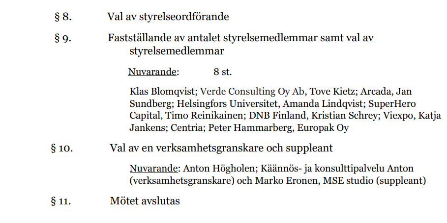 Skulle någon vilja se bokslutshandlingarna på förhand, kan de begäras via tua.takasu@nofi.fi